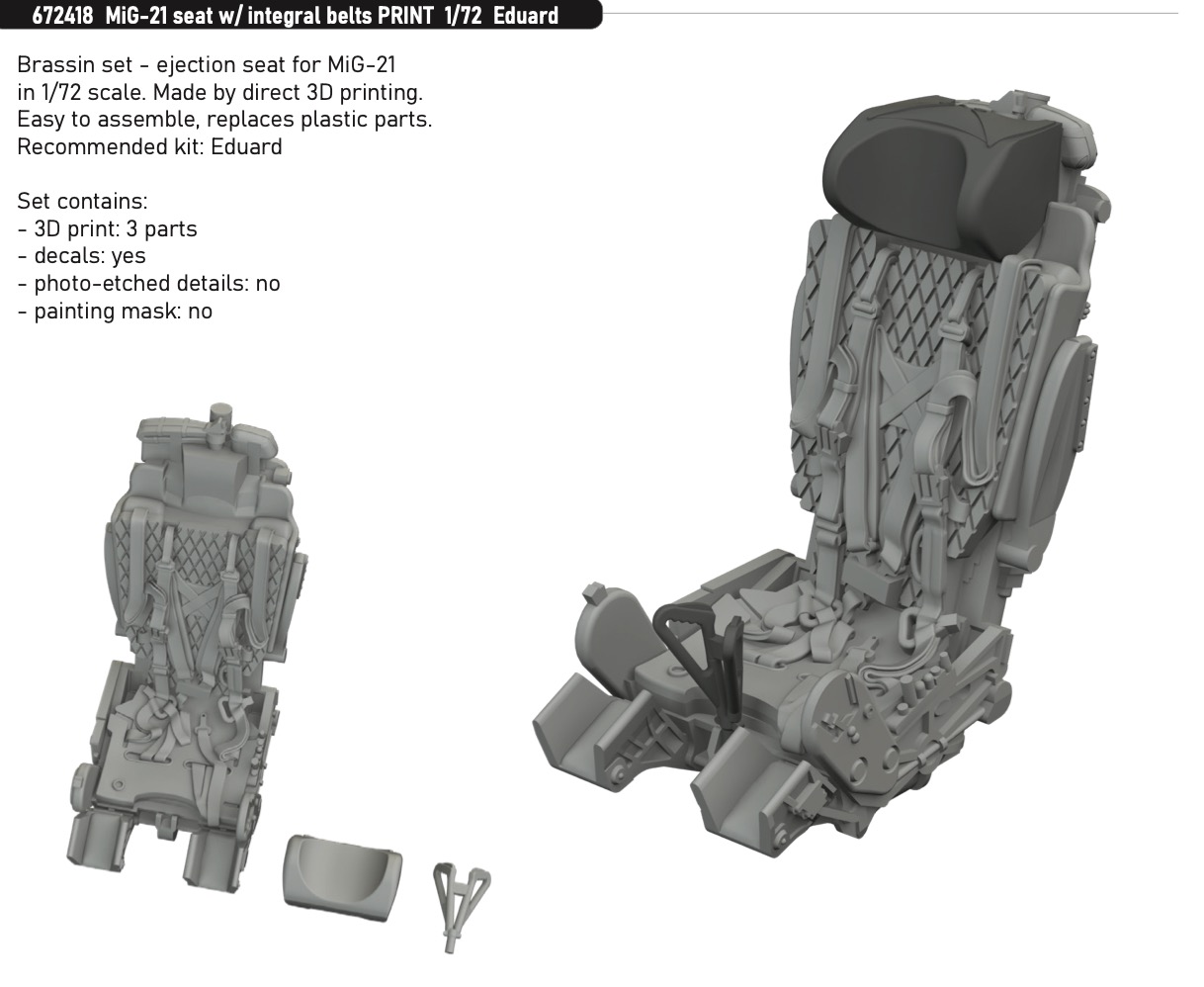 EDUARD - Brassin 1/72 MiG-21 seat with integral belts PRINT