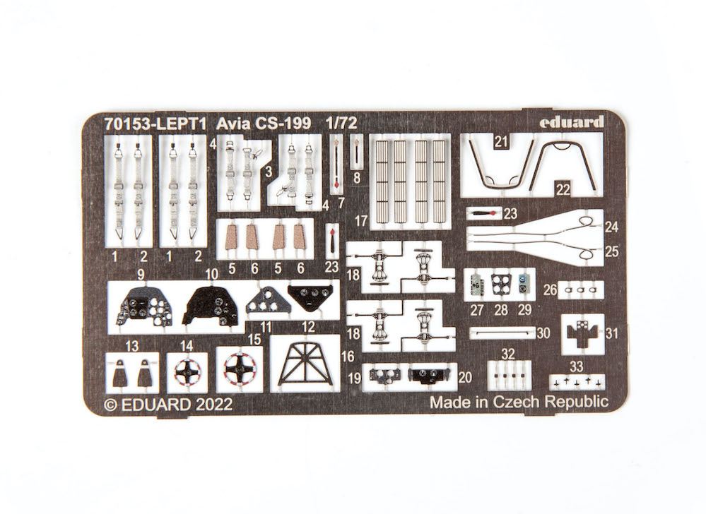 Eduard - 1/72 Avia CS-199 (first delivered 01-06-2022) Profipack edition kit of Czechoslovak single engine two-seat training fighter Avia CAvia S-199 in 1/72 scale. plastic parts: Eduard marking options: 6 decals: Eduard Pe parts: yes, pre-painted painting mask: yes resin parts: no