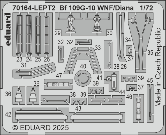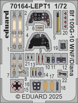 Eduard - 1/72 Messerschmitt Bf-109G-10 WNF/Diana ProfiPACK edition kit of German WWII fighter aircraft Bf 109G-10 in 1/72 scale. The kit is focused on 109s produced by Wiener Neustadter Flugzeugwerke/Diana. plastic parts: Eduard marking options: 6 decals: Eduard Pe parts: yes, pre-painted