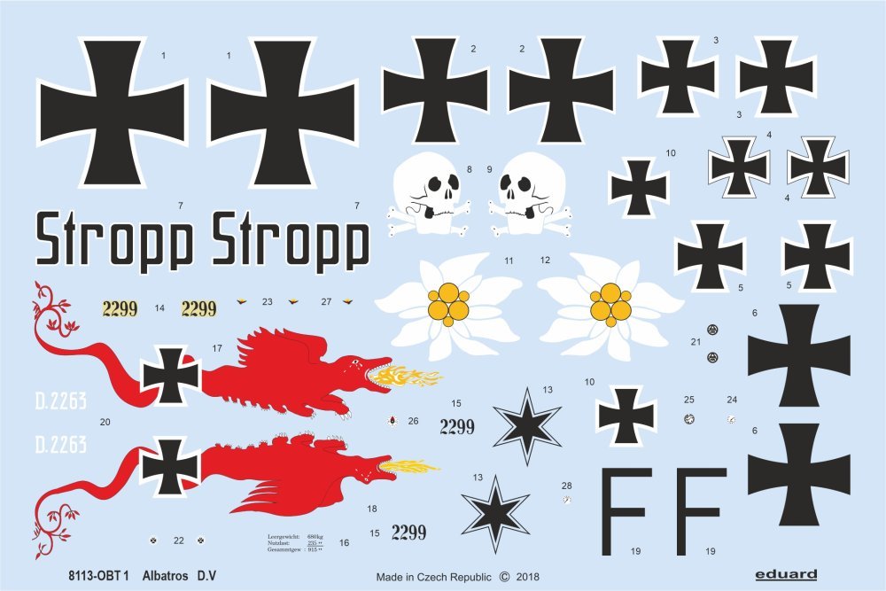 Eduard - 1/48 Albatros D.V ProfiPack edition kit of German WWI fighter aircraft Albatros D.V in 1/48 scale. - plastic parts: Eduard - No. of decal options: 5 - decals: Eduard - PE parts: yes, pre-painted - painting mask: yes - resin parts: no