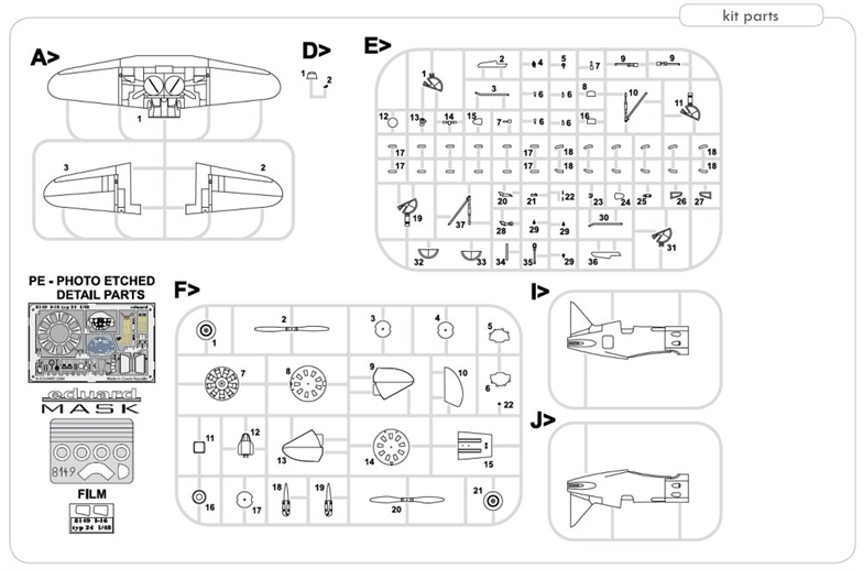 Eduard - 1/48 Polikarpov I-16 Typ 24 Reedition of Eduard tool kit . Decals printed by Cartograf, 4 marking options. PE and mask included, full color instructions
