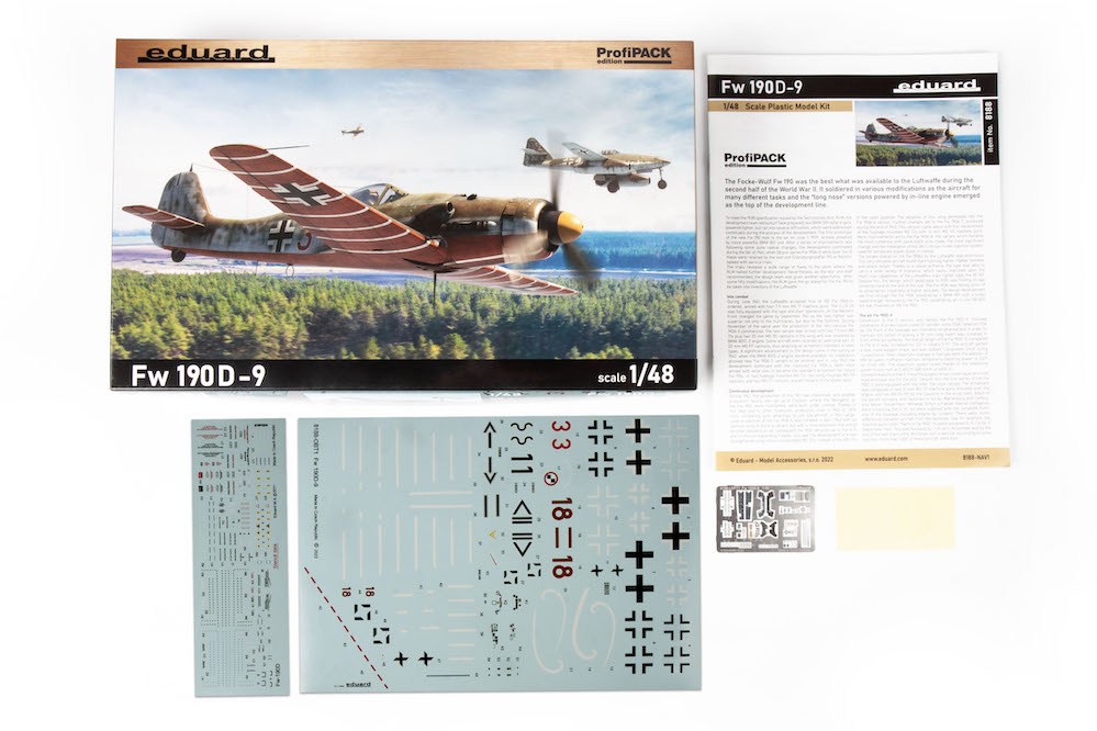 Eduard - 1/48 Focke-Wulf Fw-190D-9 ProfiPACK edition of German WWII fighter aircraft Fw 190D-9 in 1/48 scale. plastic parts: Eduard marking options: 5 decals: Eduard Pe parts: yes, pre-painted painting mask: yes resin parts: no