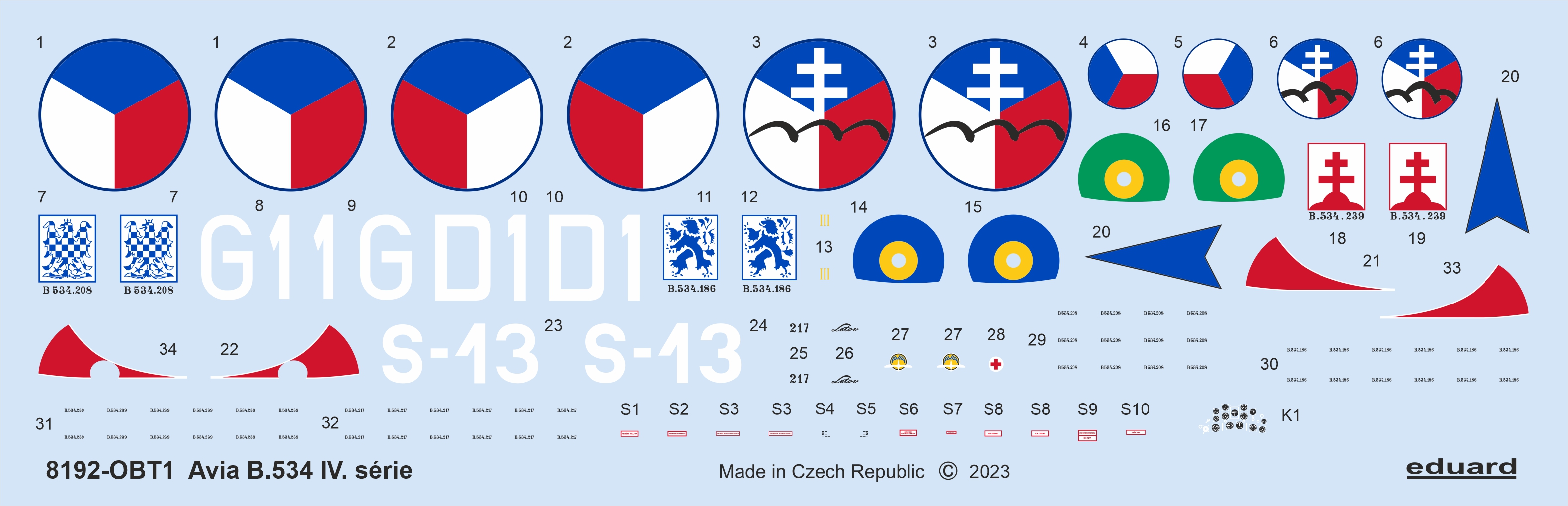 Eduard - 1/48 Avia B-534 IV serie kits) ProfiPACK edition kit of Czechoslovak fighter aircraft Avia B.534 IV. serie in 1/48 scale. plastic parts: Eduard- marking options: 4- decals: Eduard- Pe parts: yes, pre-painted- painting mask: yes- resin parts: no