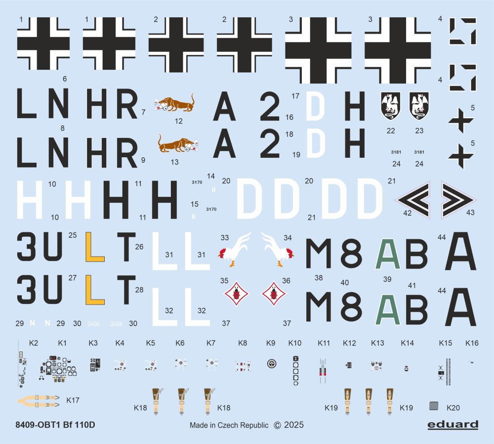 Eduard - Messerschmitt Bf-110D 1/48 kits) The Weekend edition kit of German WWII twin-engine heavy fighter aircraft Messerschmitt Bf-110D in 1/48 scale. plastic parts: Eduard marking options: 4 decals: Eduard Pe parts: no painting mask: no resin parts: noCOL ABf 110D-0, W.Nr. 3170, Lt. Felix-Maria Brandis & Uffz. Guntram Weigl, 1.(Z)/JG 77, Petsamo, Finland, September 1941COL BBf 110D-0, W.Nr. 3181, 4./ZG 2, Gyancourt, France, July 1940 Col C Bf 110D-2, W.Nr. 3406, 9./ZG 26, Trapani, Sicily, Spring 1941 Col D Bf 110D-0, W.Nr. 3156, Hptm. Werner Restemeyer, Stab/ZG 76, Stavanger-Sola, Norway, May-June 1940