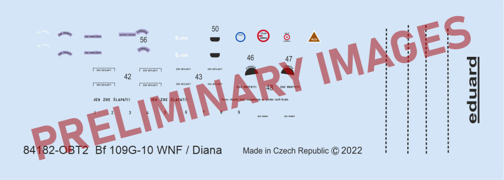 Weekend edition kit of German WWII fighter aircraft Bf 109G-10 in 1/48 scale. The kit is focused on 109s produced by Wiener Neustadter Flugzeugwerke / Diana. plastic parts: Eduard, decal: 4,PE parts: no, mask: no, resin parts: no