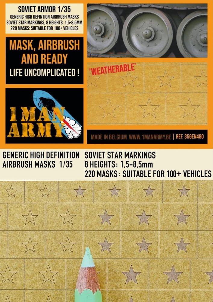 1 MAN ARMY - 1/35 SOVIET Red Stars Full 8 heights Airbrush mask