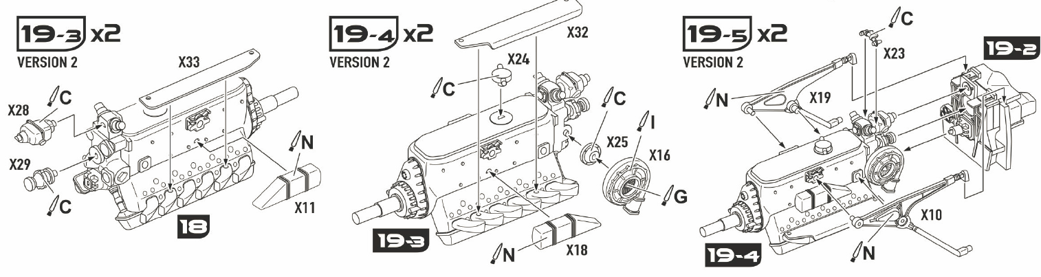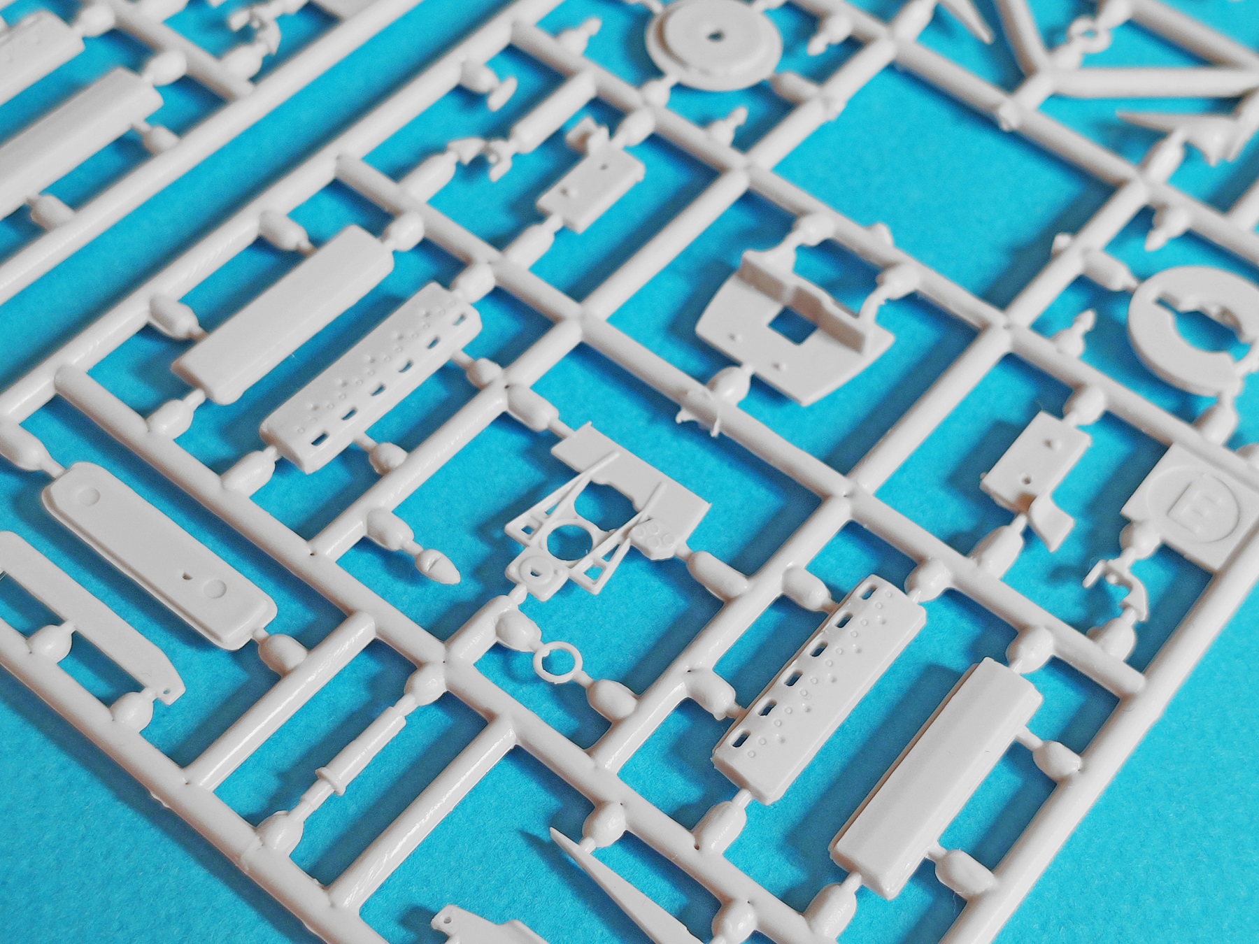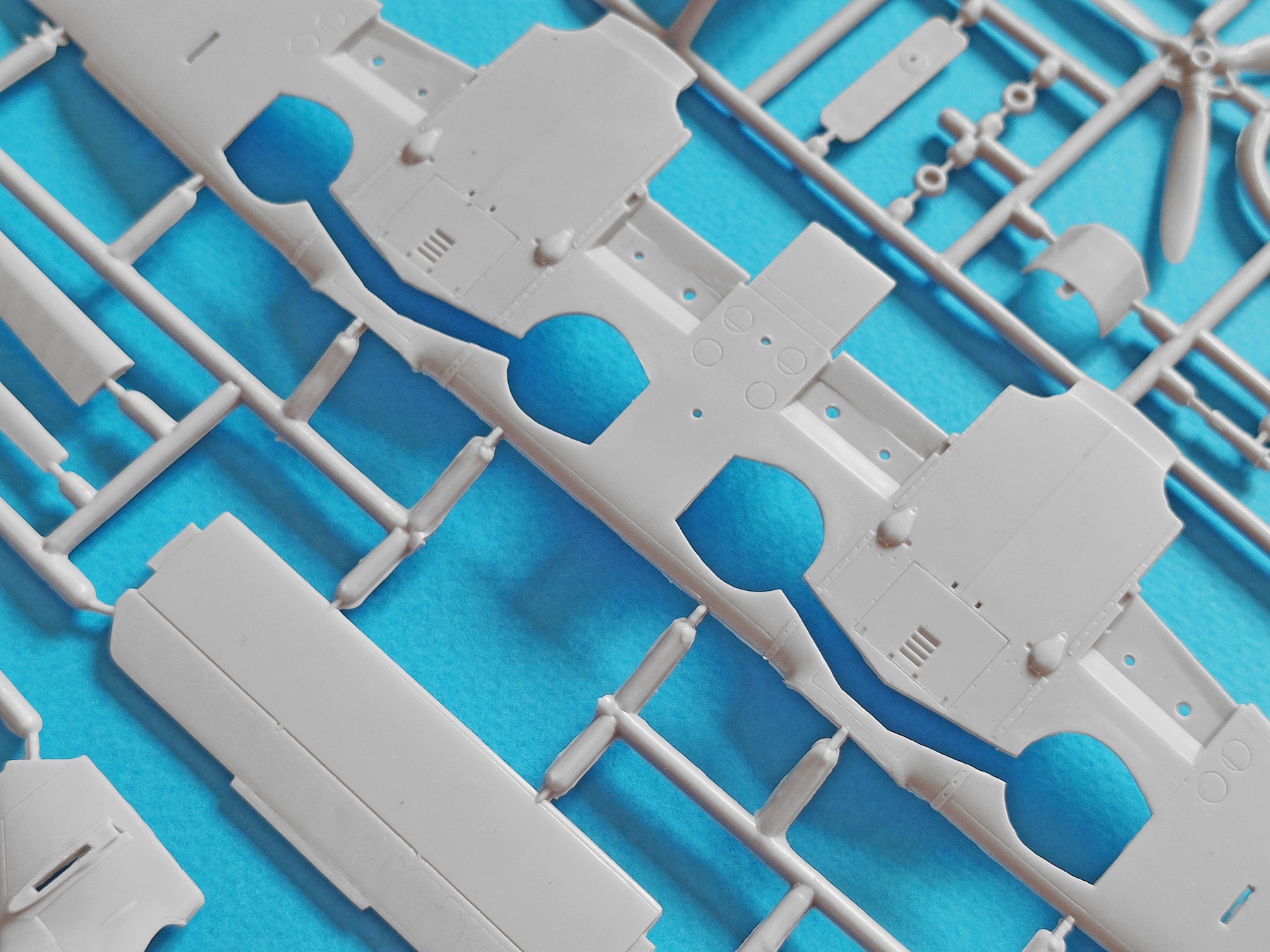 The engine cowlings could be set in a closed or open position, thus showing the engine (consisting of a dozen parts).