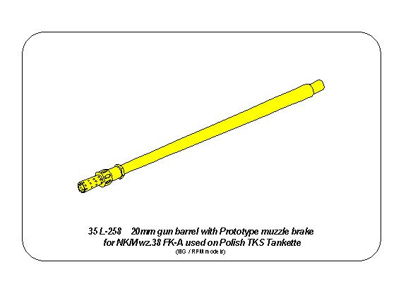 Aber - 1/35 20mm gun barrel with prototype muzzle brake for nkm wz.38 FK-A used on Tks Tankette (for Ibg and RPM)
