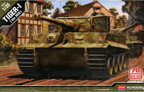 Academy - 1/35 Pz.Kpfw.VI Tiger1 Mid Version 70th Anniversary Normandy Invasion Updated version with 2 new sprues including new asymmetric turret, mantlet & gun barrel. Choice of 11 markings