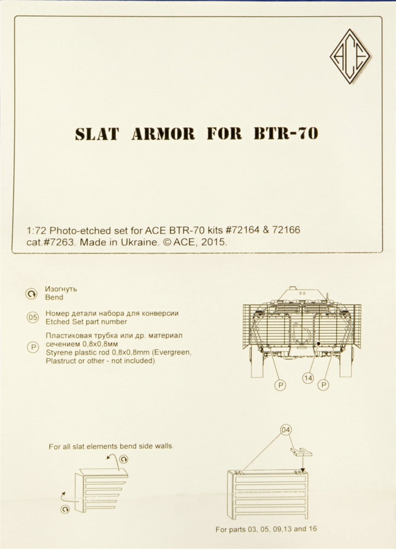 Ace - 1/72 BTR-70 Slat Armor (PE set)
