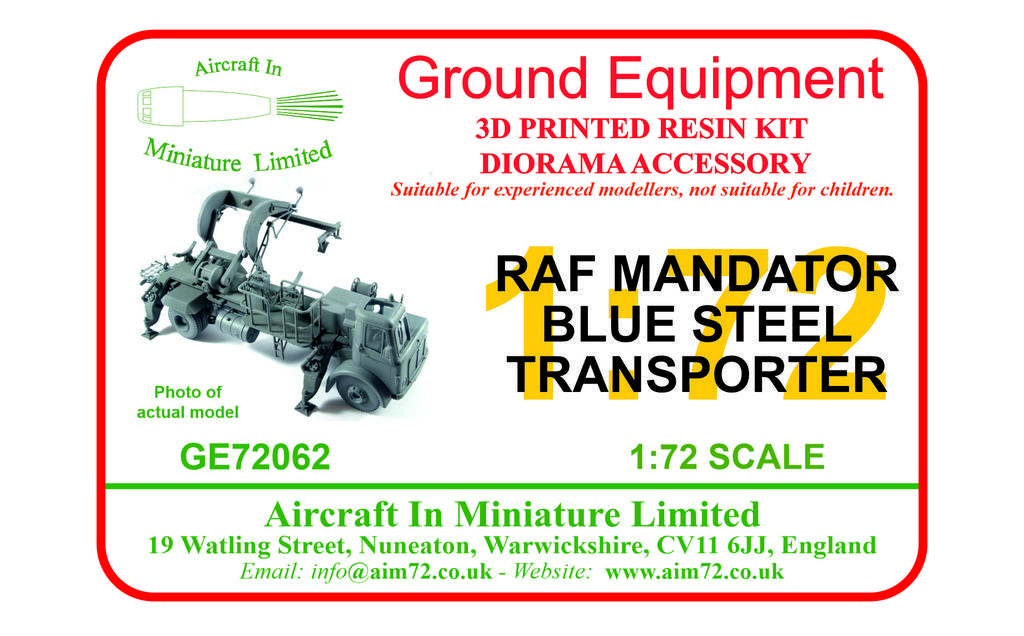 AIM - 1/72 Raf Mandator Blue Steel missile transporter. A highly detailed 3D printed model with movable derrick and outrigger legs. (for Airfix kits of the Avro Vulcan B.2 and Handley-Page Victor B.2 with Blue Steel missile)