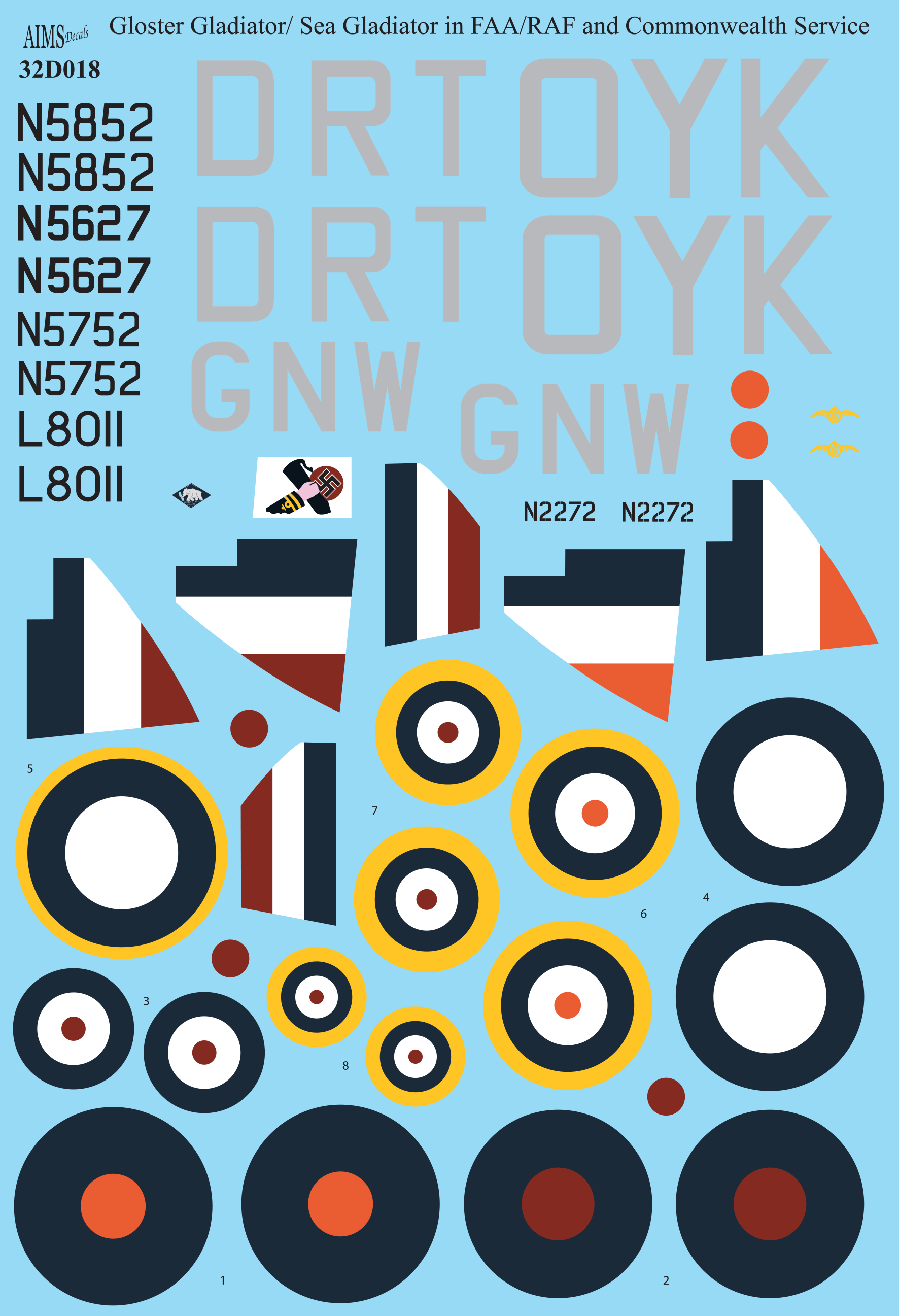 Aims - 1/32 Glostor Gladiator Mk.I/Sea Gladiator decals (for Icm and Silver Wings kits)