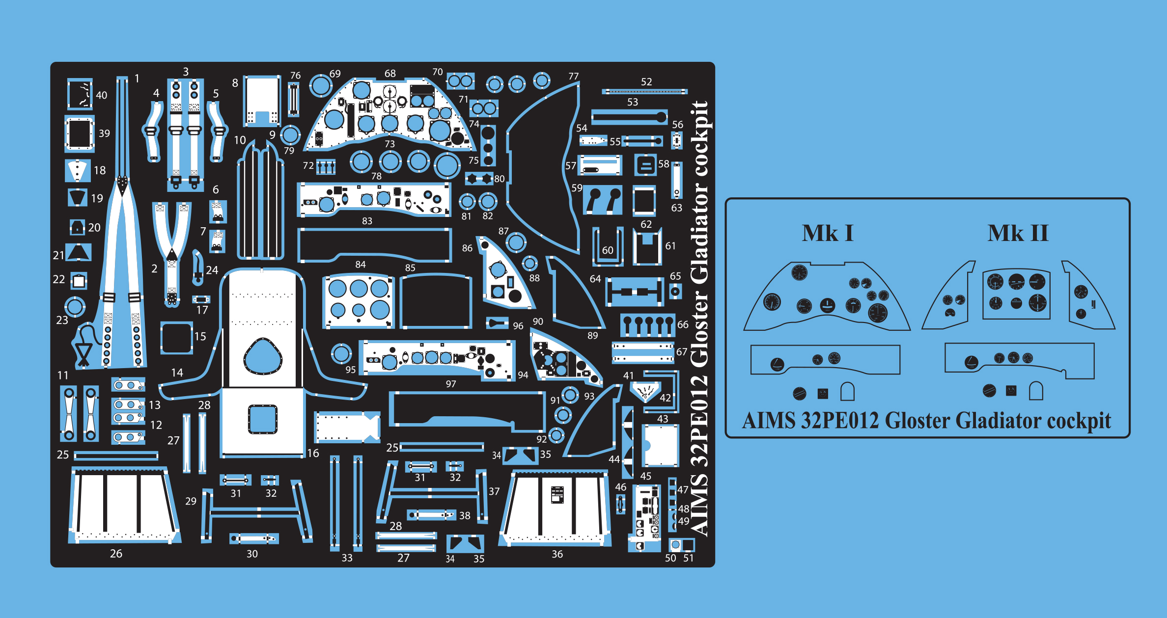 Aims - 1/32 Gloster Gladiator Mk.I/Mk.II/Sea cockpit details (for Icm kits) photoetched set