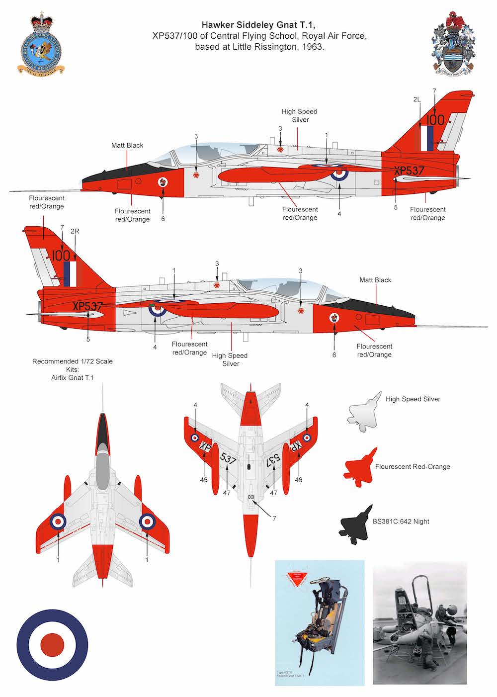Hawker-Siddeley Gnat T.1 XP537/100 of CFS, Raf Little Rissington 1963