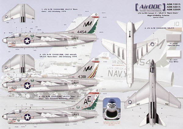 Airdoc - 1/48 Ltv A-7B Corsair 3 154454 NM/410 VA-25 Uss Oriskany 1974; 154381 NM/400 VA-215 Cga Uss Oriskany 1974; 154463 AE/412 VA-215 Uss Thoedore Roosevelt 1977