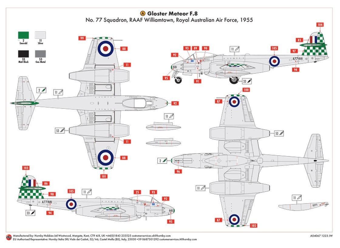 Scheme A-Gloster Meteor F.8 A77-881, No.77 Squadron Royal Australian Air Force, Raaf Williamtown, New South Wales, Australia, 1955