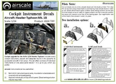 Airscale - 1/24 Hawker Typhoon Mk.Ib Instrument & Placard Upgrade Set (designed to be used with Airfix kits)