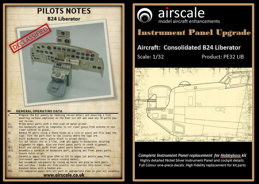 Airscale - 1/32 Consolidated B-24D/B-24J Liberator replacement nickel silver panel with full colour instrument decals (for Hobby Boss kits)