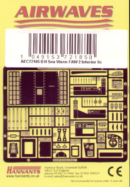 Airwaves - 1/72 de Havilland Sea Vixen FAW.2 interior (for FROG, Novo and Revell etc kits) (4934:18)