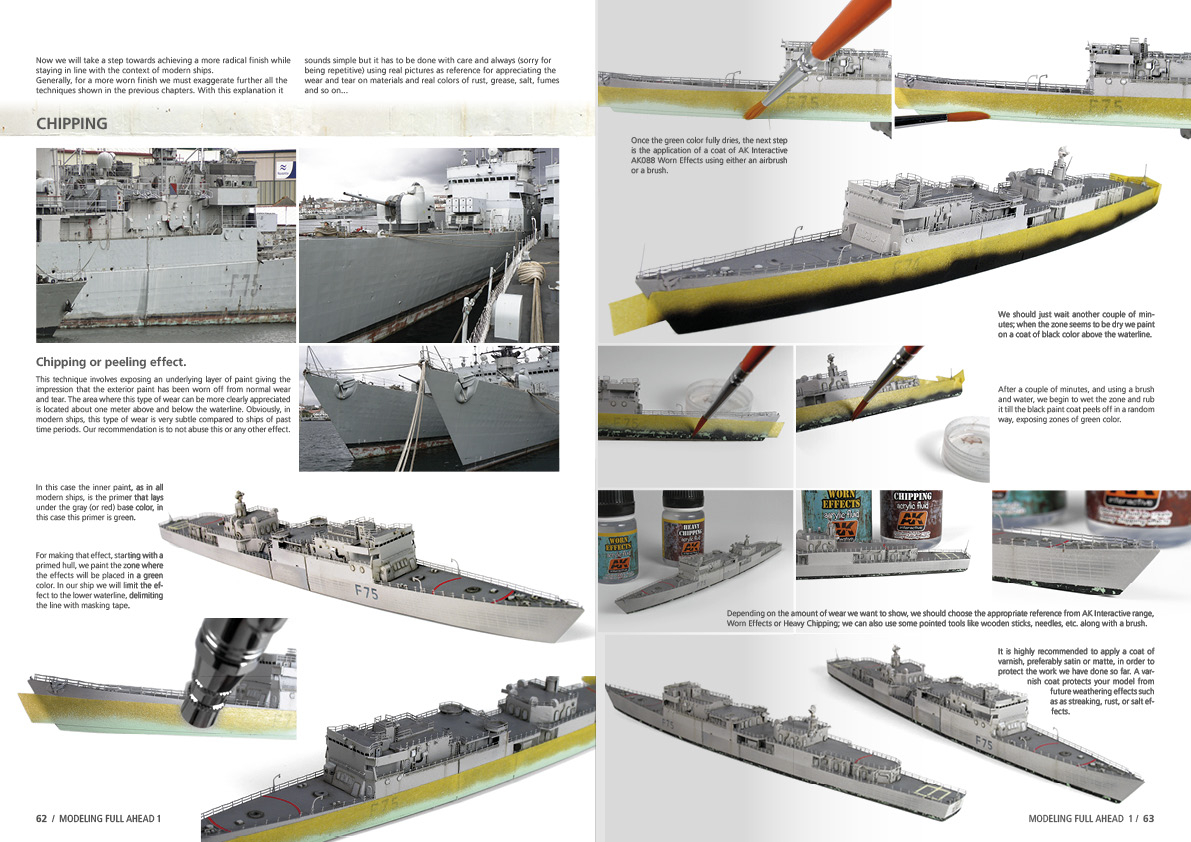 AK Interactive - MODELLING FULL AHEAD 1 / KNOX & BALEARES CLASS Modelling Full Ahead is a series of books for naval modelers. The aim is to concentrate on a specific ship class in depth. From pictures showing all the angles of the ship, to the model kits you can use and, of course, a detailed step by step on how to transform ythe modelship in an outstanding artwork. For this first issue Fran Romero, wellknown naval modelling master, with the collaboration of the italian modeller Luciano Rizzato, will guide us through the difficult, but exciting, way of modelling a Knox/Baleares Class frigate. Follow Fran and Luciano in their journey around the Knox/Baleares Class, from standard kits to 4 outstanding models, with different levels of weathering, and learn in an easy and practical way their master modelling techniques. A book from modellers for modellers, a ‘must' have to improve ythe naval modelling skills.