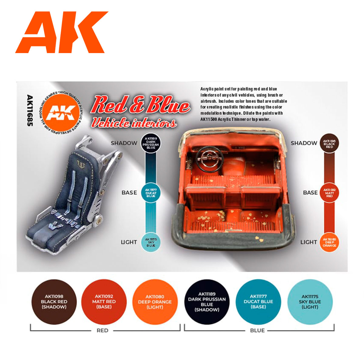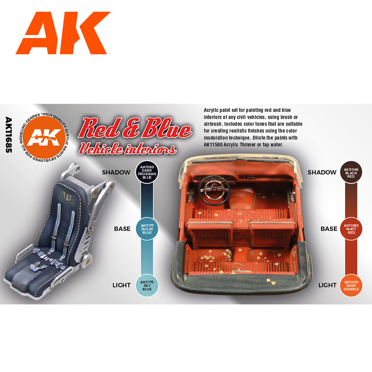 AK Interactive - Red & Blue Vehicle Interiors Interior De VEHCULOS Rojo Y AZUL