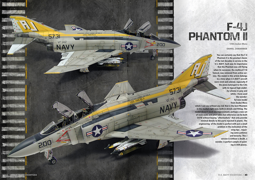 The new book, special for USN enthusiasts and for modellers in general, a deep view of the most emblemathic jets selected by Daniel zamarbide for this book with an imressive gallery of real jets by Ioannis Lekas. Yo can seen the most modern techniques to apply in your modern jets and a lot of ideas. In this book the modeler will see all effects of painting and improvements on different jets of the USN.