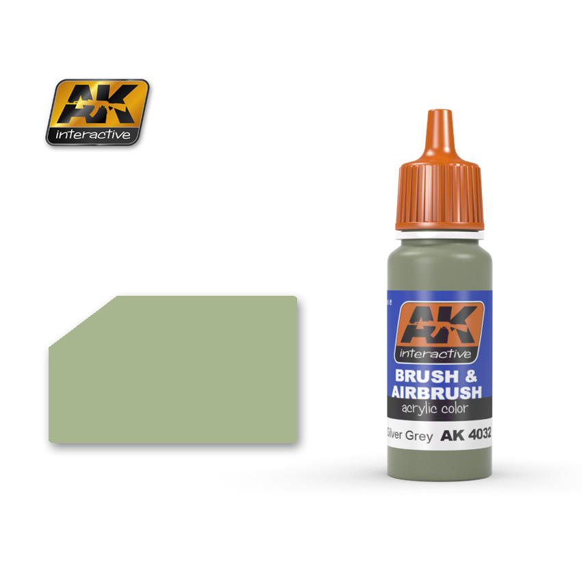 AK Interactive - SILVER GREY 17 mL acrylic paint. Use alone or mix with other acrylic paints to obtain a different color. Just shake it and use it. The paint is designed to be effective for airbrush and brush and is water- soluble, avoiding strong smells and harmful solvents. It can be easily thinned with the specific acrylic thinner or water if necessary. The acrylics are manufactured by AK Interactive and are made with a formula that prevents clogging in the airbrush.