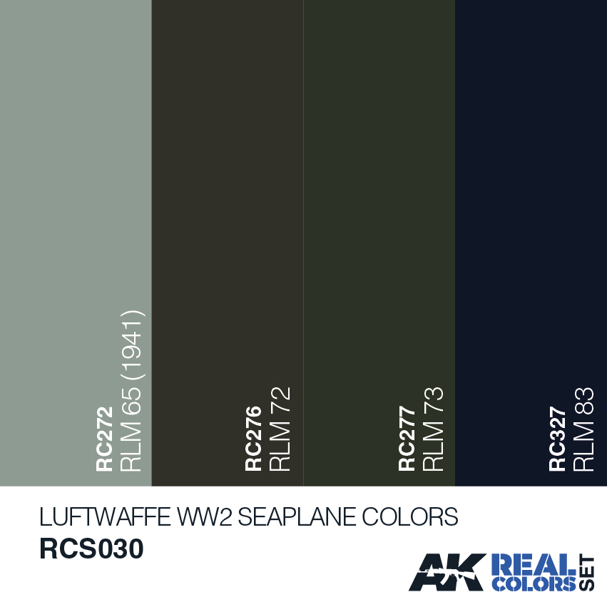 AK Interactive - Luftwaffe WWII seaplanes colors set for painting luftwaffe seaplanes used during world war two. Included is the rlm 83 blue color which may have been used for camouflaging aircraft operating over waters in the late war period