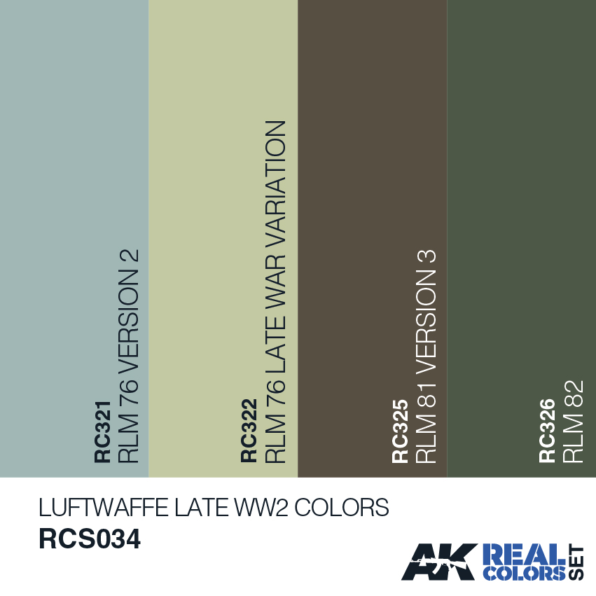 AK Interactive -Late WWII Luftwaffe colors set for painting luftwaffe aircraft manufactured from ca. The summer of 1944 until the end of war.