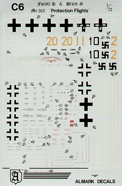 Almark - 1/72 Me-262 Protection Flights. Focke-Wulf Fw-190D-9, Messerschmitt Bf-109G-14 1, 2; Yellow 1, 2, 20; Black 10