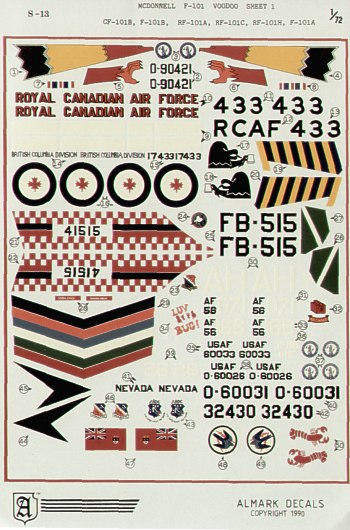 Almark - 1/72 McDonnell F-101 Voodoo McDonnell CF-101B, F-101B, McDonnell RF-101A McDonnell RF-101C, McDonnell RF-101H, F-101A