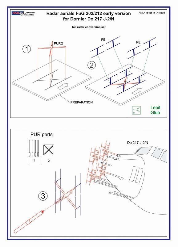 AML - 1/48 FuG 202/212 radar aerials for the Dornier Do-217J-2/N early version (for Icm kits) with etched parts