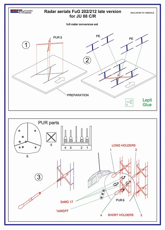 AML - 1/48 FuG 202/212 radar aerials late version for the Junkers Ju-88C-6/R (for Icm kits) with etched parts