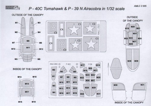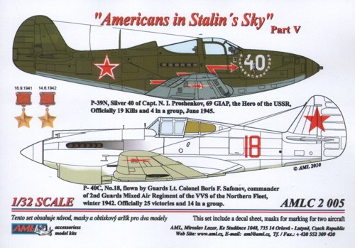 AML - 1/32 Americans in Stalin's Sky, Part V Masks Curtiss P-40C Tomahawk & Bell P-39N Includes decals for 2 aircraft. National Insignia and Canopy paint masks