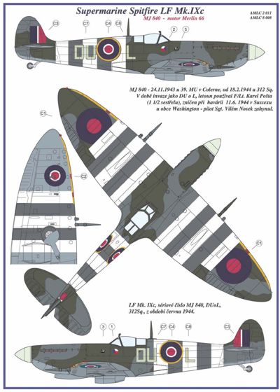 AML - 1/32 Supermarine Spitfire Mk.IXC 2 decal versions : DU-L. Includes decals for 2 aircraft. National Insignia and Canopy paint masks