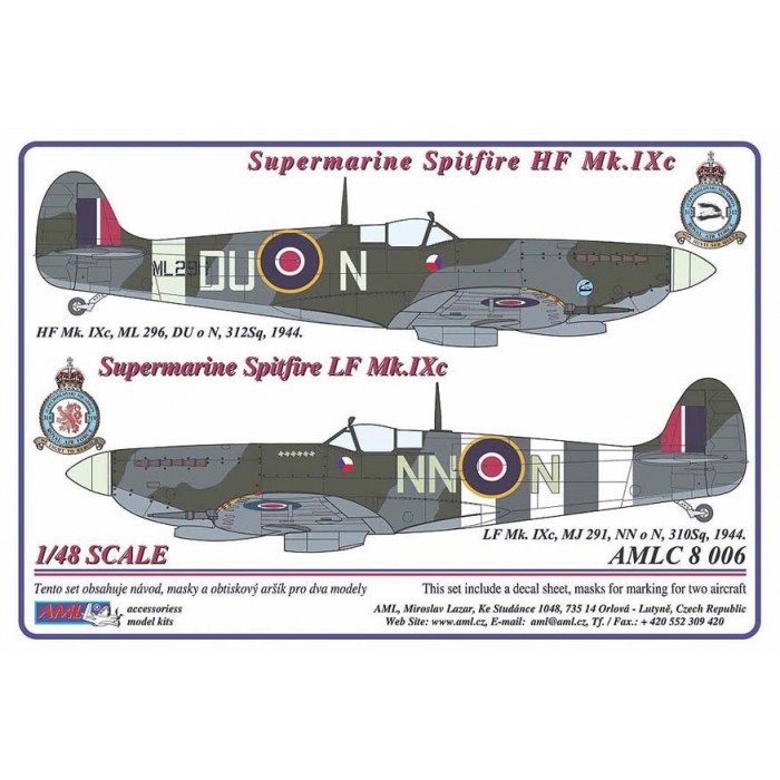 AML - 1/48 Supermarine Spitfire Mk.IXC 2 Raf decal versions : DU-N , NN-N. Includes decals for 2 aircraft.