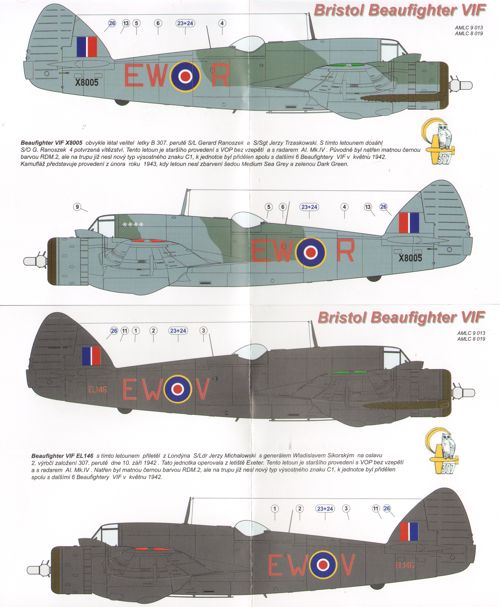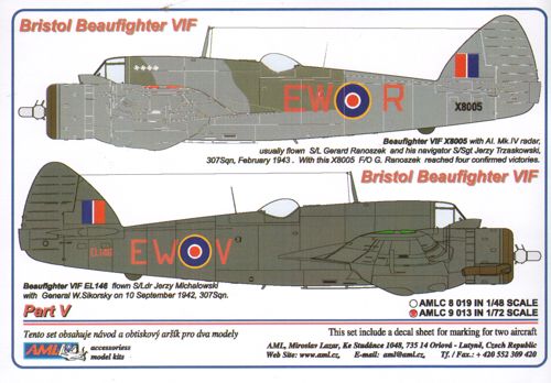 AML - 1/72 Bristol Beaufighter / Part V 2 decal versions : WMoR, WMoV (for Frog and Hasegawa kits)