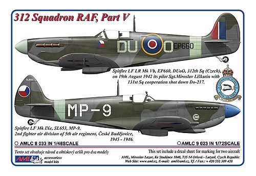 AML - 1/72 312 th Squadron RAF, Part V / 2 decal version:Supermarine Spitfire LF LR MkVb, EP660, DUoO + Supermarine Spitfire LF Mk.IXe, SL653, MP-9