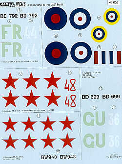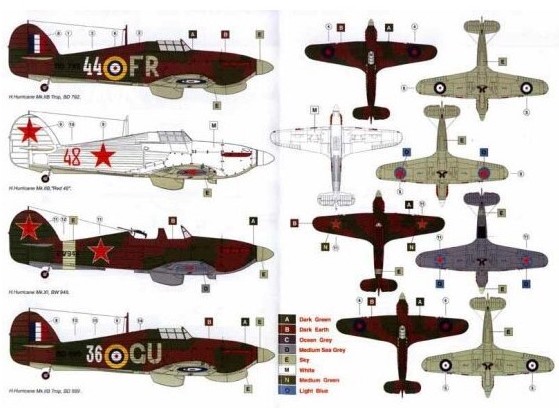 Hawker Hurricanes in the Ussr Pt 1 4 Mk.IIB Tropical version BD792 FR-44 S/Ldr A.H.Rook 81 Sqn Raf 1941; BD699 GU-36 134 Sqn Raf 1941; Mk.IIB Red 48 26 Iap Moscow 1941 white top sides; Mk.XI two seat version BW948.