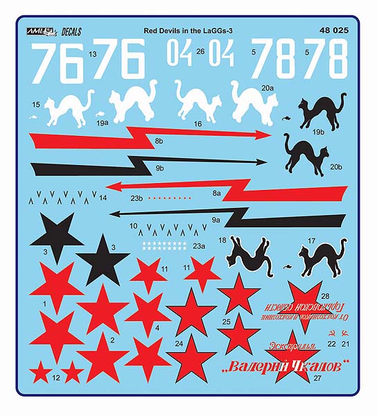 AML - 1/48 Lavochkin LaGG-3 Part 1. (3) Flown by Capt Mironov No 78 609th IAP, Capt Galchenko No 76 145th IAP with black or white cats on fin, 21st IAP No 04
