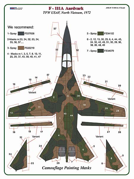 AML - 1/72 General-Dynamics F-111A Aardvark camouflage paint mask (for Hasegawa kits)