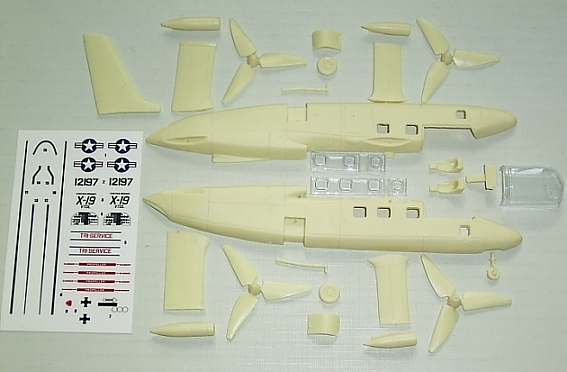 Anigrand Craftswork - 1/72 Curtiss-Wright X-19 Tilt-propellers Vtol experiment. In 1958, Curtiss-Wright started the four passengers Vtol commercial aircraft program without any government support. It was designed with a tilting propeller at each wing tip that a nacelle could rotate in pointing vertical for take off and landing and pointing horizontal for cruise. When the two prototypes were almost completed, Curtiss-Wright decided to offer these two aircraft to the Air Force for Vtol technologies development of the Tri-service military needs. Under the Air Force agreement, three prototypes would be built, two for flight tests, one for structural testing and designated X-19. The 1st prototype first flew in November 1963. Many problems surfaced during the following months. Two years later it was crashed by parts failures and pilot error. The Air Force still wanted to test the 2nd prototype. However, Curtiss-Wright saw no future business in civil Vtol transport and ended the program. The 1st X-19 completed test flight total of 3.85 hours and the 2nd X-19 was never flown