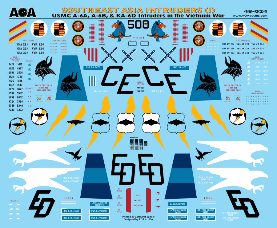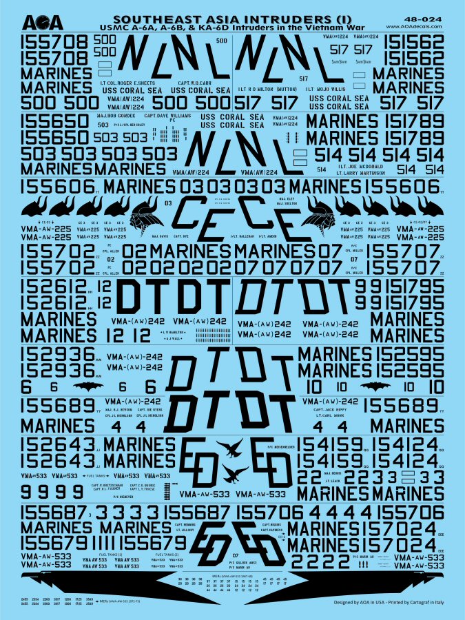 AOA Decals - 1/48 Southeast Asia Grumman Intruders 1 Usmc A-6A, A-6B, & KA-6D Intruders in the Vietnam War