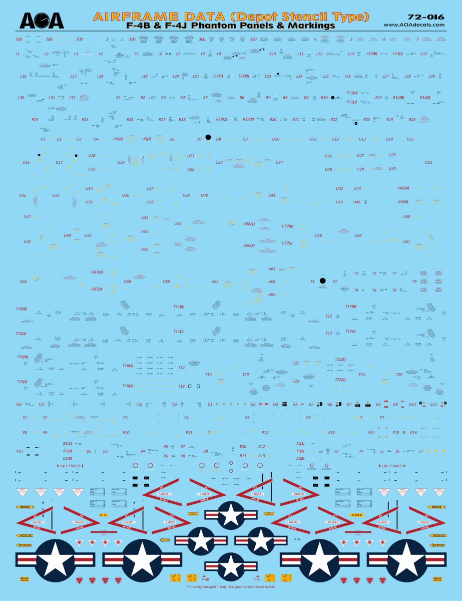 Full depot airframe data/stencils provided for one aircraft sized for the Fine Molds, however, a second set of the basic markings and national insignia are included. Additional full depot data/stencil sheets are also available to purchase separately, see 72-016. Note that these depot airframe data/stencils are not applicable to all schemes covered on this sheet.