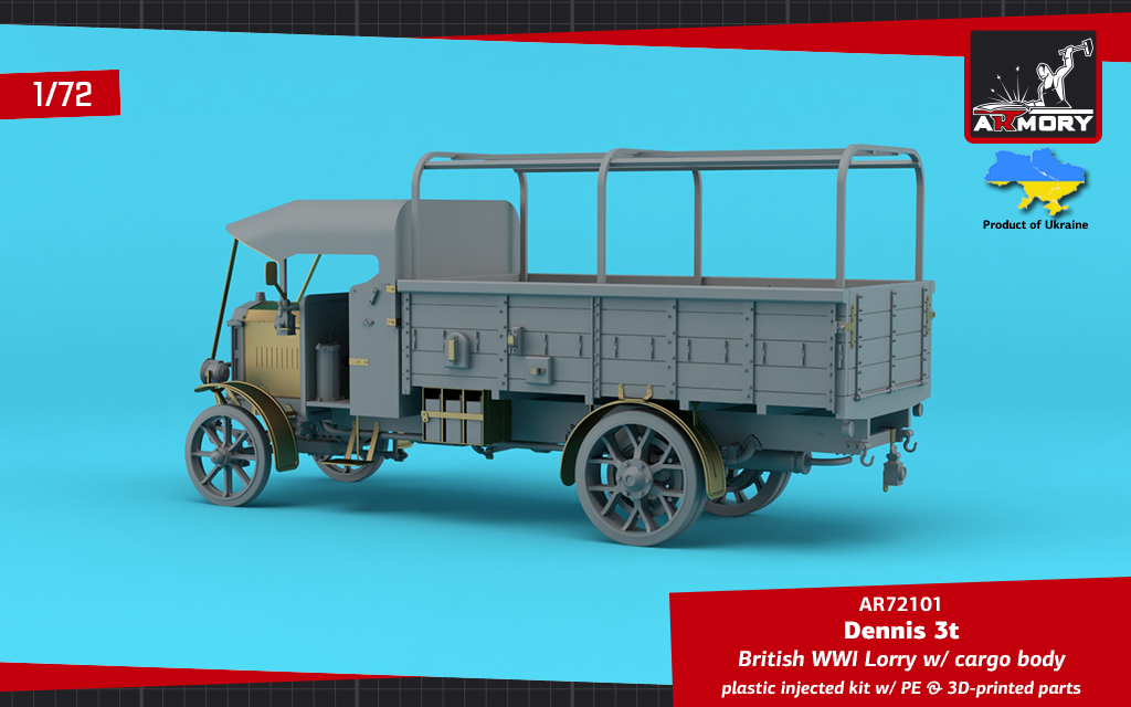 Armory - 1/72 Dennis 3t Lorry, British WWI lorry with flatbed cargo body plastic kit with Pe parts & resin engine