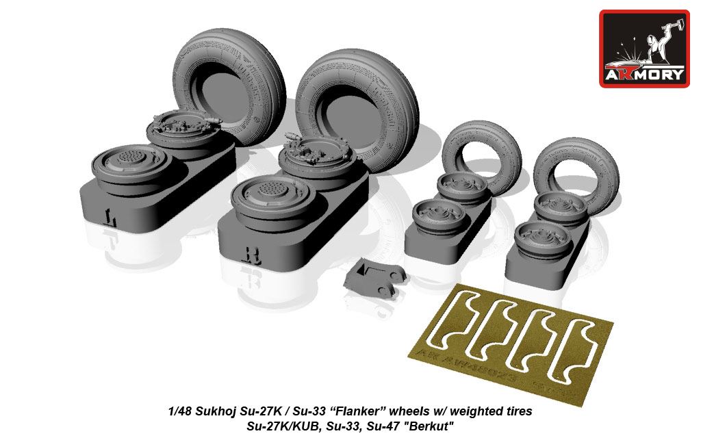 Armory - 1/48 Sukhoi Su-27K / Su-33 wheels w/ weighted tires, front mudguard - Su-27K/KUB, Su-33, Su-47 "Berkut"