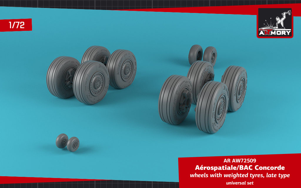 Armory - 1/72 Aerospatiale Concorde wheels with weighted tyres, late version (for Airfix, Heller and Revell kits)