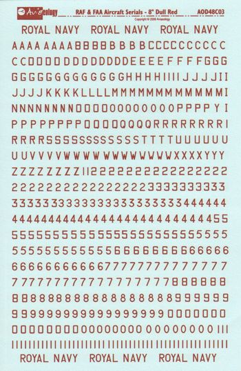 Aviaeology RAF FAA Aircraft Serials Dull Red 1/48 Decals