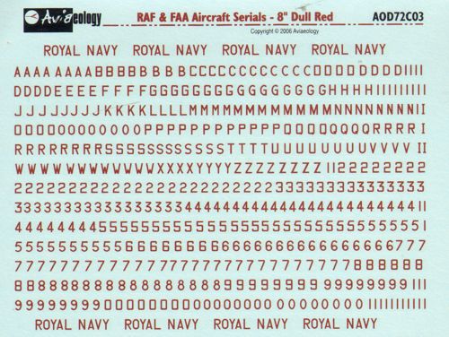 Aviaeology RAF/FAA Aircraft Serials Dull Red 1/72 Decals