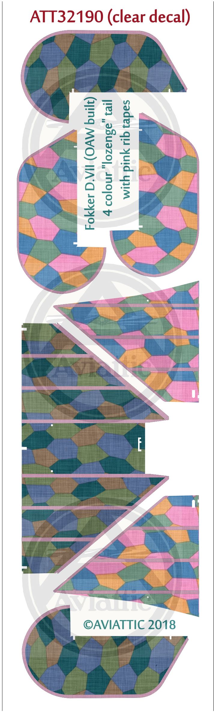 Aviattic - 1/32 Fokker D.VII (OAW built) 4 colour lozenge tail with pink rib tapes (new tail sets)